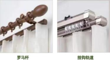 ■羅馬桿:一根直桿上串掛起窗簾,適合在單一平面上的直型窗戶,不適用于L型或U型窗戶。